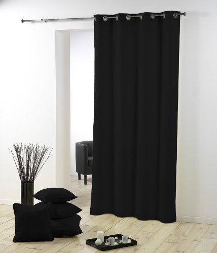 Douceur d'Intérieur 1600833 Rideau Oeillets Polyester Uni Essentiel Noir 140 x 260 cm