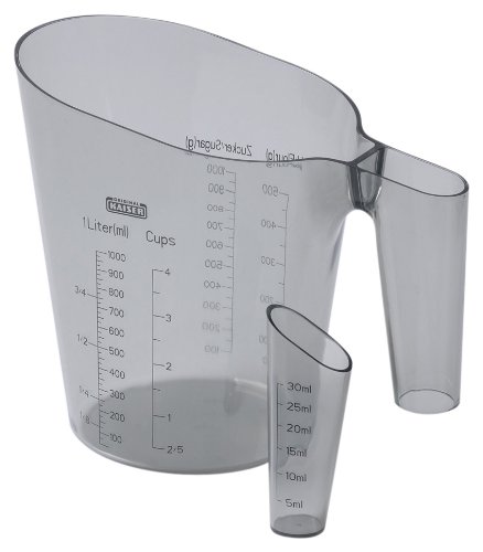 Kaiser 769387 Verre mesureur 2 pièces Plastique transparent/noir Contenance 1 L Mini verre mesureur de 30 ml dans la poignée Passe au lave-vaisselle (Import Allemagne)