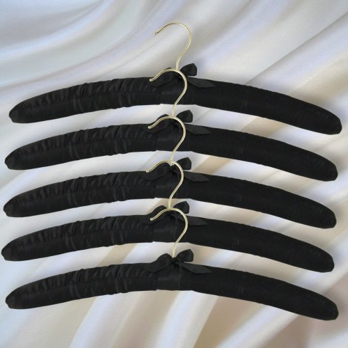 Hangerworld - Pack Cadeau - 4 Cintres Matelassés Souples - Satin Noir - Taille Adulte - 43 cm