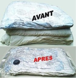 Housse de rangement sous vide 4 Housses . Housse de rangement sous vide : Economisez jusqu a 300% d espace dans vos armoires !Les housses de rangement, enfin une innovation qui va changer votre quotidien ! D une facilite deconcertante adoptez ces housses de rangement qui vous permette de gagner un gain de place phenomenal en un rien de temps. Les housses de rangement sont tellement pratiques que vous ne pourrez plus vous en passer. Ces housses de rangement vous permettes un visuel facile de leur contenu en un clin d œil, un rangement minutieux de toute les matieres synthetiques ou autres matieres volumineuses qui vous font perdre un temps precieux faute de place dans vos placards et tiroirs. Avec ces housses de rangement vous allez faire des envieuses car vous gagnez 300 % d espace dans vos armoires. Facile a utiliser et d une qualite incomparable, vous serez obligatoirement conquise par ces housses de rangement! Ces housses mesurent 80x100 cm et permettent de ranger de maniere claire et ordonnee tous vos vetements, couvertures, couettes, oreillers, etc... Totalement hermetiques, les housses de rangement sont une barriere ideale contre la poussiere, l humidite, les insectes, les moisissures et les odeurs. Chaque housse dispose d une fermeture a glissiere double totalement hermetique ainsi qu un zip de fermeture rapide. Les avantages de la housse de rangement : - simplicite et rapidite d utilisation - Perte de volume de toute matiere - Parfaitement hermetique (car sous vide) - Protection efficace contre les insectes, la poussiere... - Transparente - Valve non retour - Fermeture a glissiere double - Zip de fermeture rapide 1 housse de rangement : 2 housses de rangement : 3 housses de rangement : 4 housses de rangement :