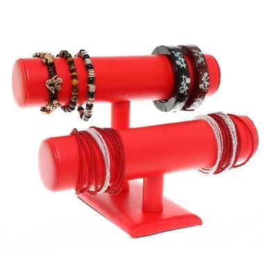 Jonc à bracelets ou montres (2 rangs)?Joncs de présentation pour bracelets, montres ou chevillères sur 2 rangs. Diamètre du rondin : 5 cm En simili cuir blanc ou noir.