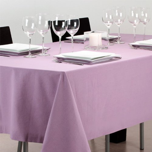 #Cette nappe rectangulaire anti-tâche est 100% polyester. Taille 140 x L240 cm. Couleur parme. Lavable en machine à 30° et repassage possible.