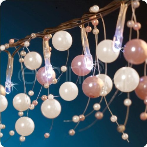 Guirlande LED avec perles déco - perles roses et LED blanches -