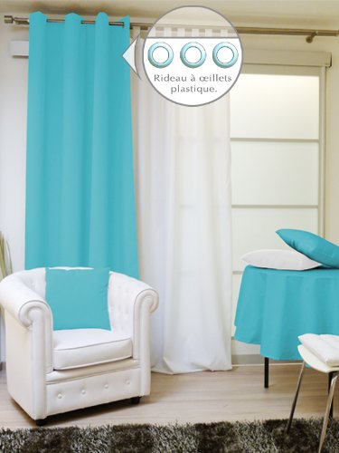 RIDEAU A OEILLETS 140x240 ALIX TURQUOISE Infroissable et Anti-tâches